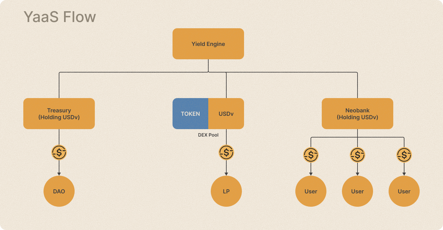 Passes it to the right holders: stakers (sUSDv) and eligible USDv holders via YaaS.