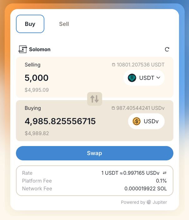 We fixed a swap widget issue that broke embedded buy/sell flows for USDv, which forced users to route via Jupiter directly. The widget is functional again, and we updated styling to better match our design system.