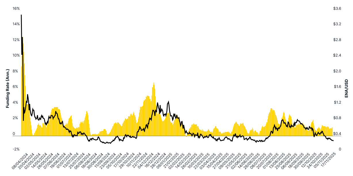 Median Funding Rates v/s ENA/USD