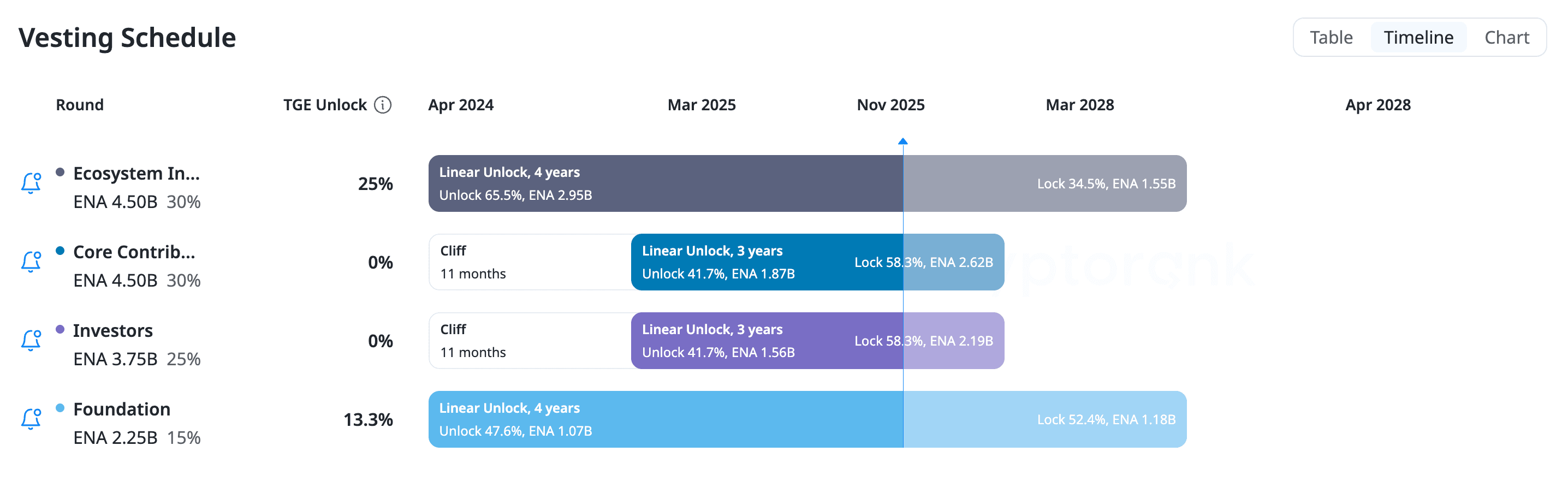 There is an 18 month cliff for the initial unlock with a 3 month TWAP after every tranche of the unlock - this is the core difference between ENA and SOLO in terms of any potential sell pressure from unlocks.